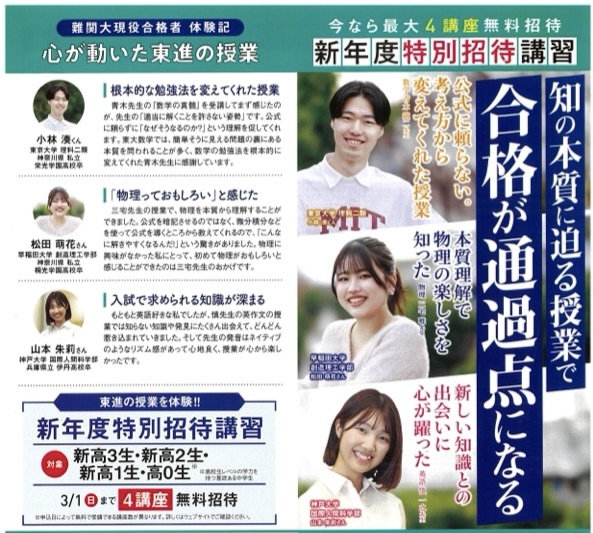 申込方法 www.toshin.comのホームページで東進模試を選び申し込みができます。